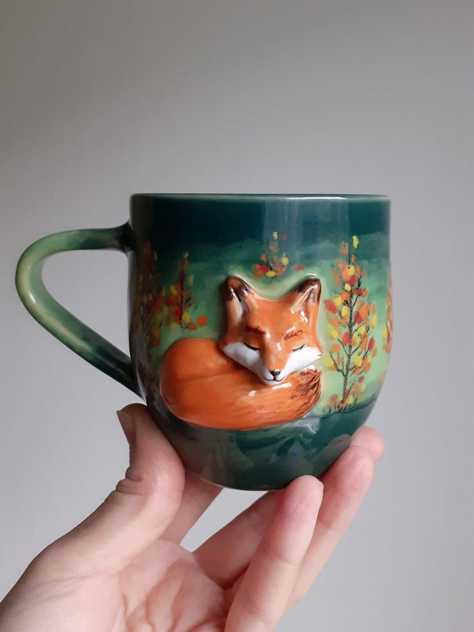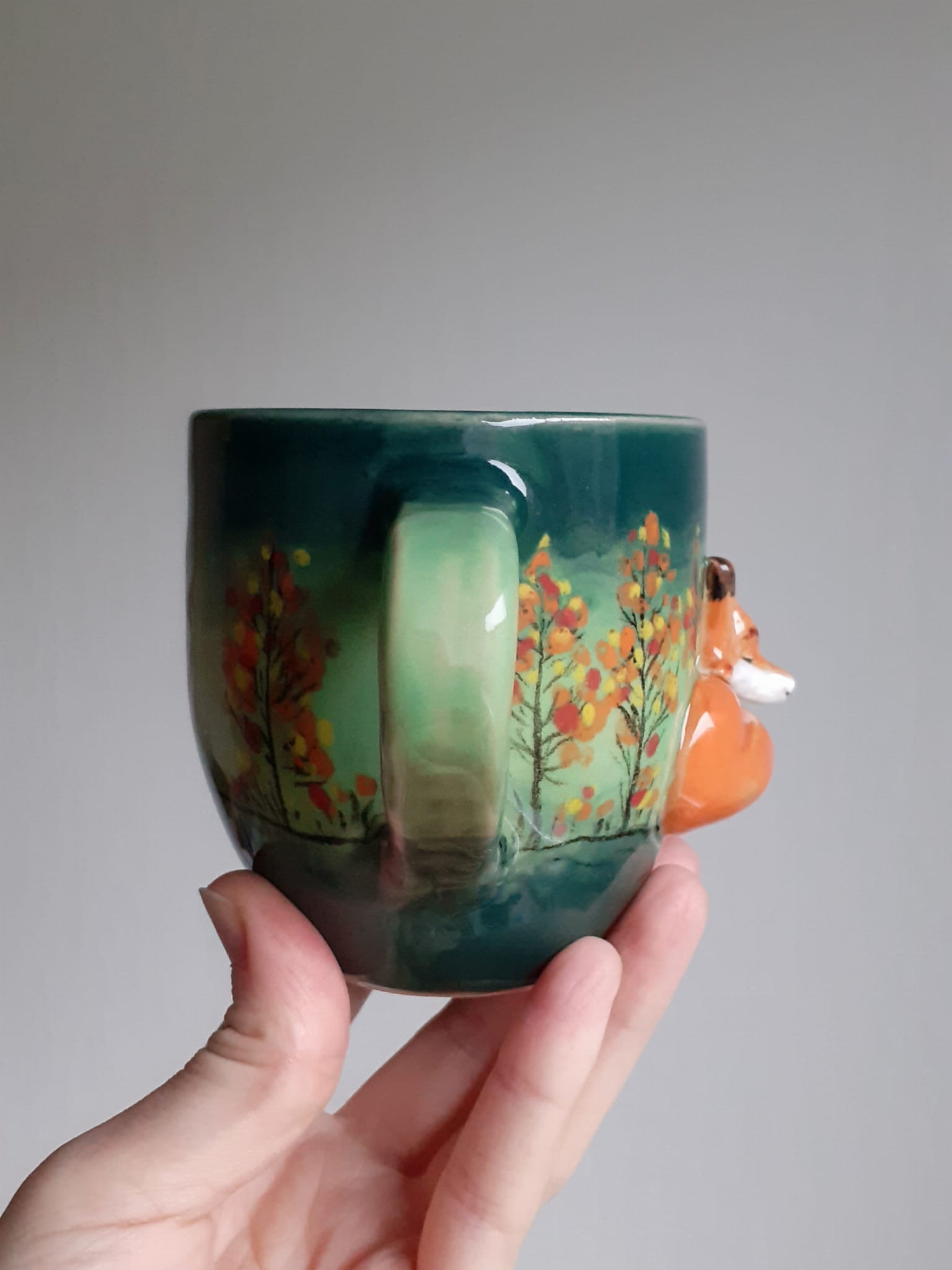 Kubek z lisem ręcznie robiony, lis, las, rękodzieło, z muchomorem, amanita, jesienny, na prezent, filiżanka