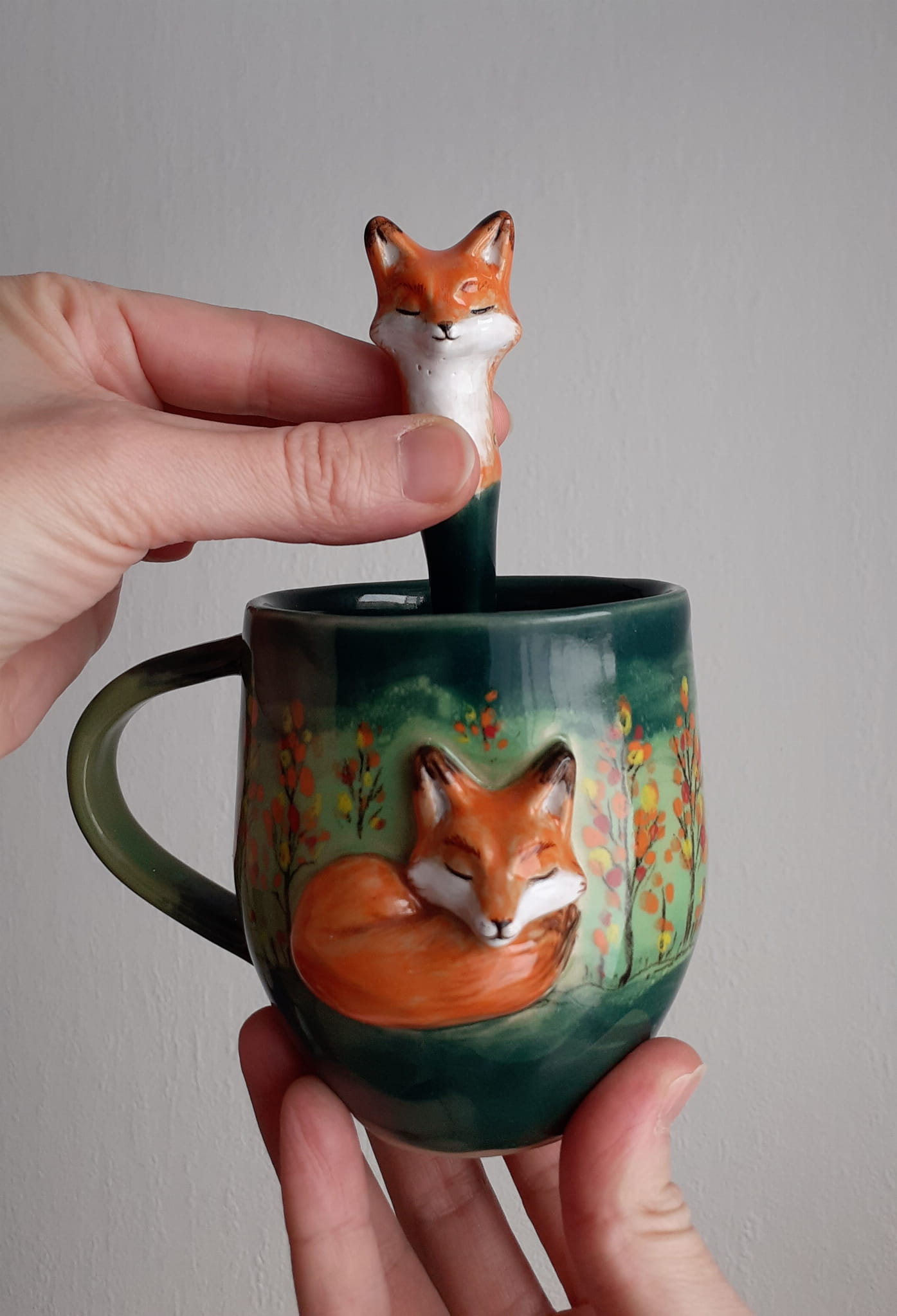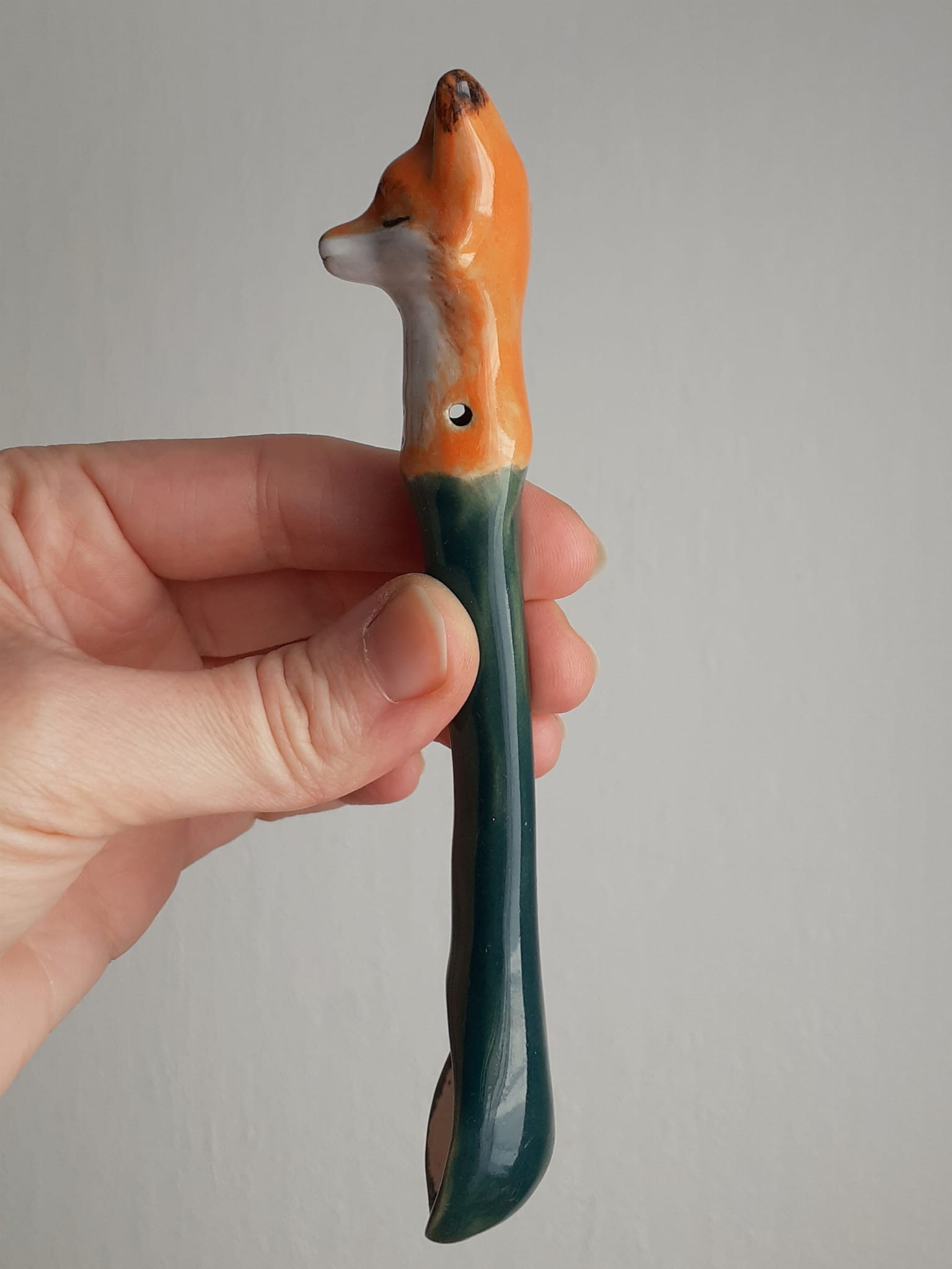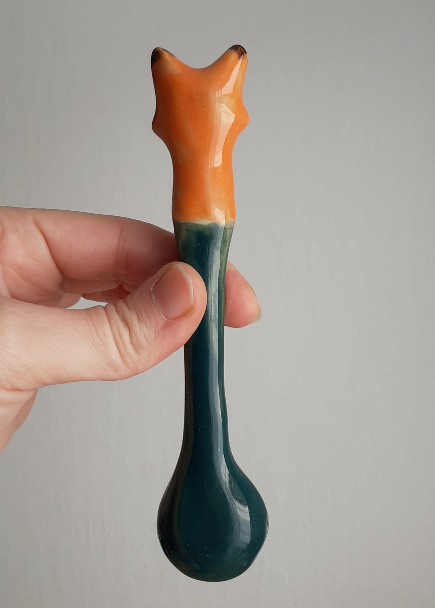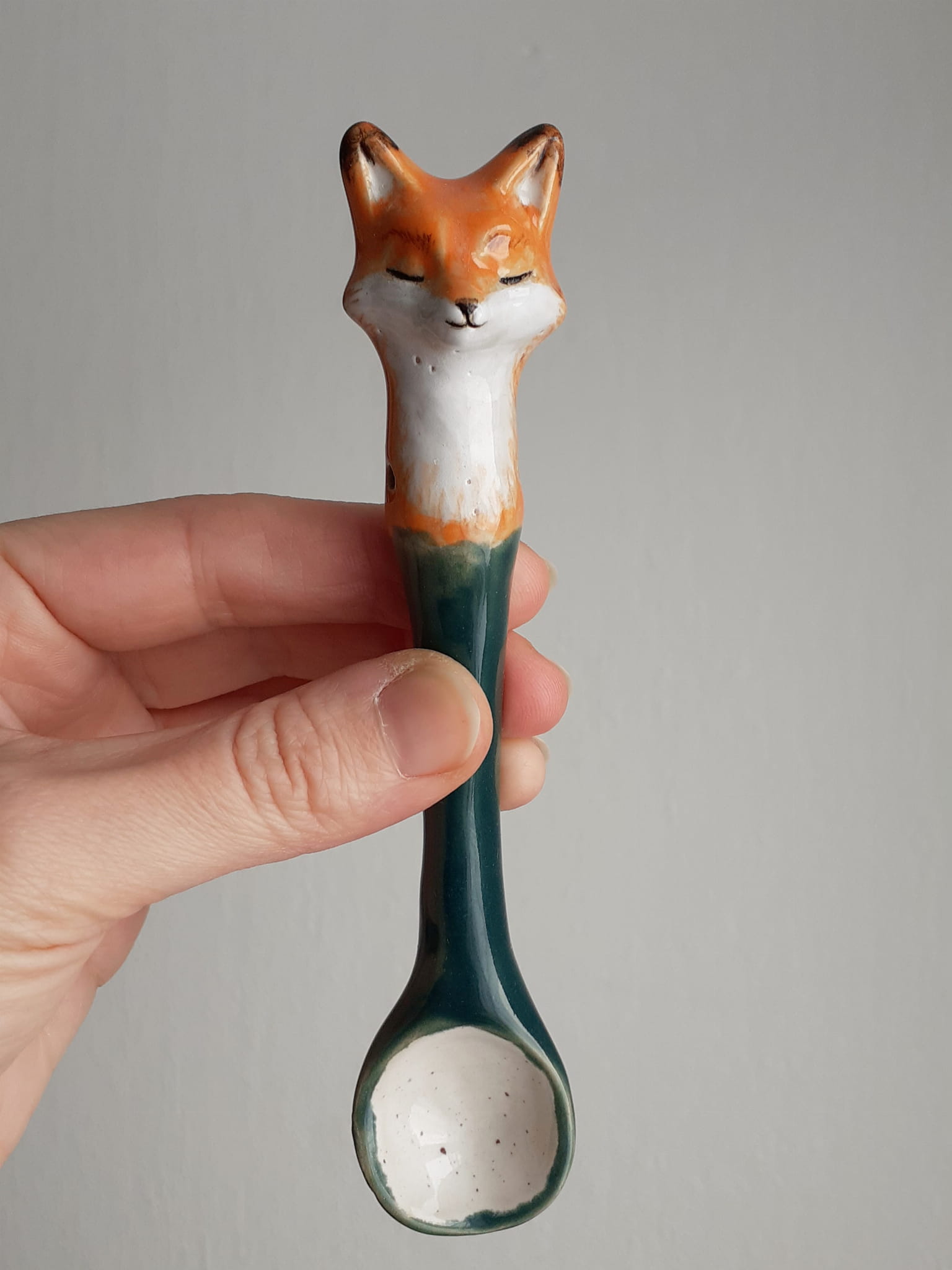 Łyżeczka ceramiczna z lisem zielona