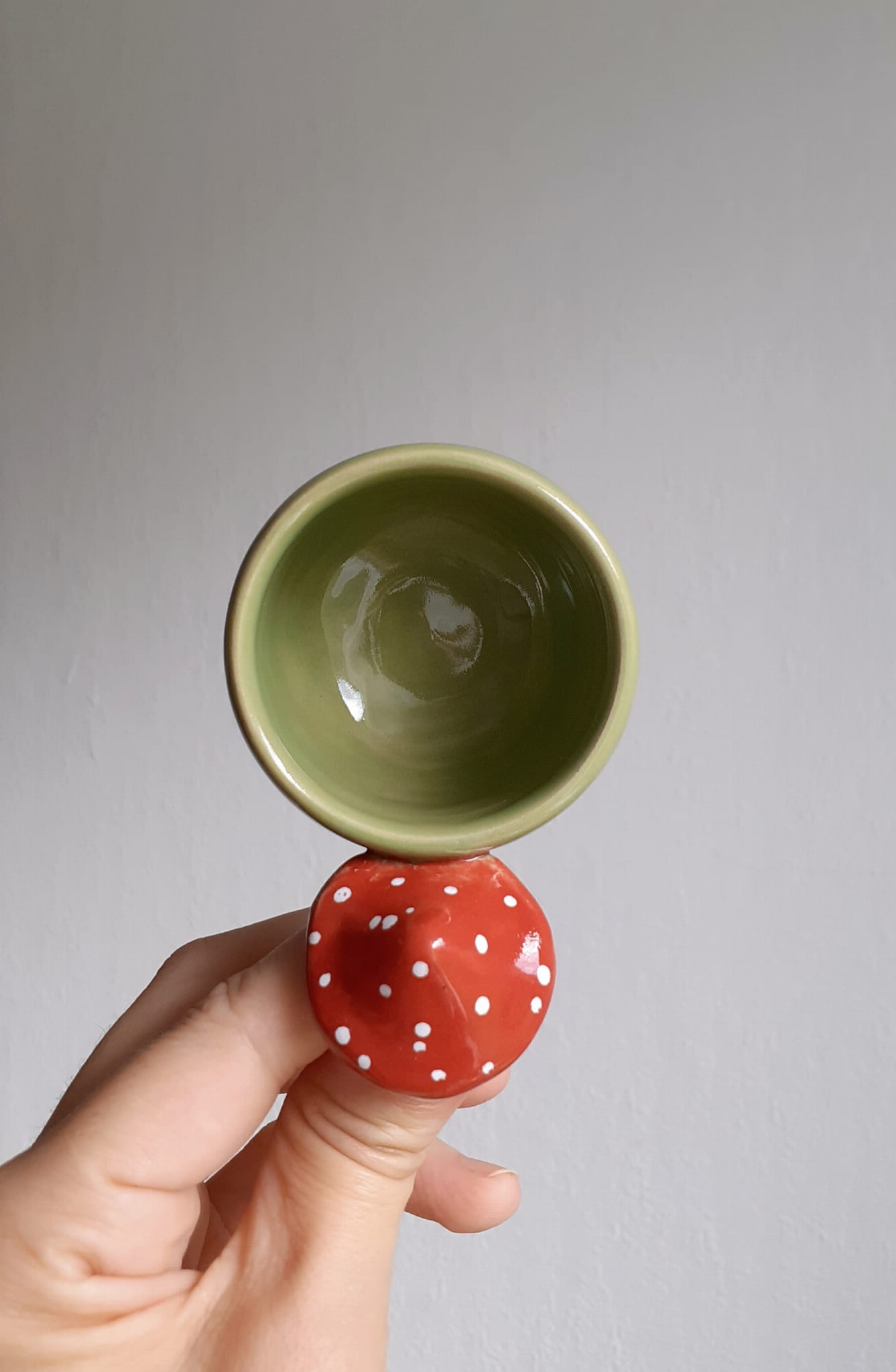 Wysokość filiżanki 6 cm , całkowita z grzybkiem około 7,5 cm.